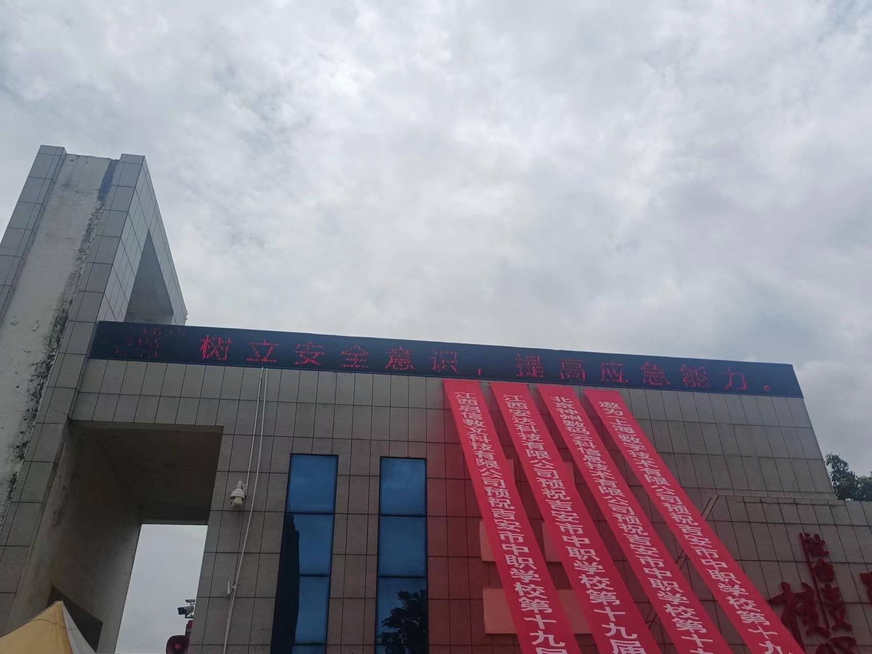 为全力做好“安全生产月”宣传工作,增强我校全体师生的安全意识和学习新安全生产法的知识能力。我校在LED显示屏不间断滚动播放安全警示标语和新安全生产法知识,以助推“安全生产月”宣传工作,扩大宣传影响力。