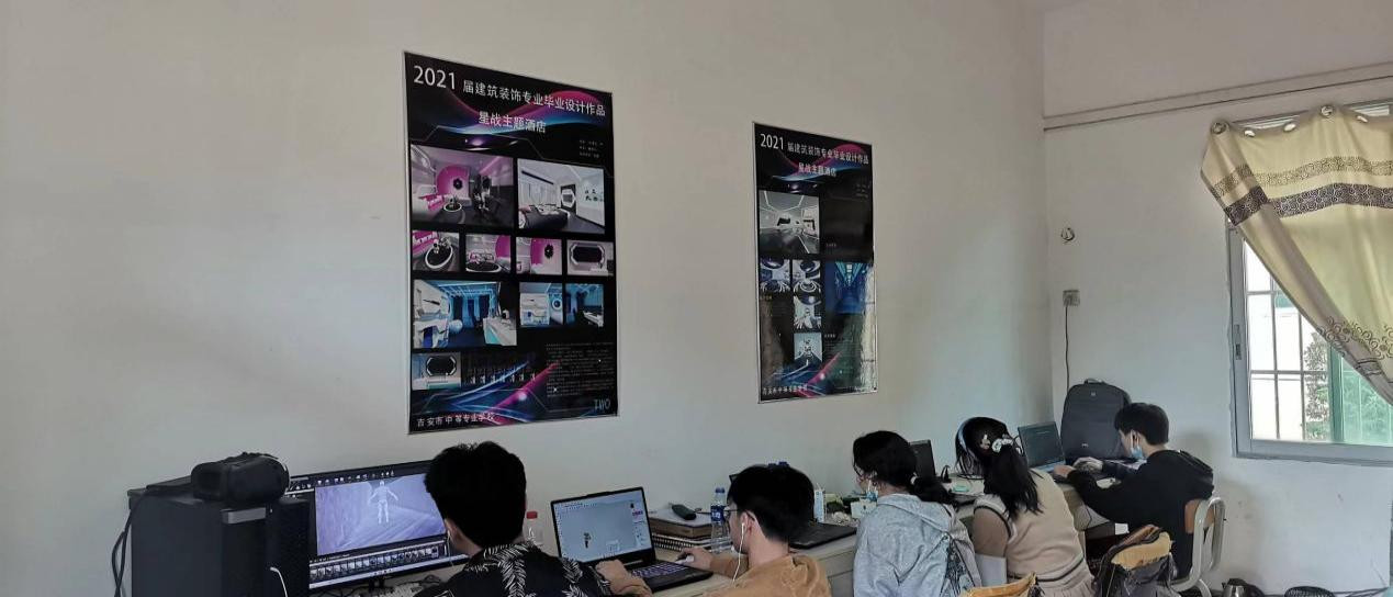 配备有建筑装饰机房,并建有建筑装饰工作室,工程测量工作室,VR虚拟现实工作室,在校进行建筑CAD,建筑装饰施工,效果图制作等实训学习。