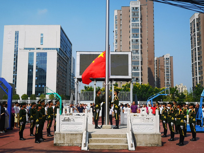 9月6日上午十点我校组织了新学年第一次升国旗仪式。全体师生在蓝天下,迎着阳光举行这庄严而又隆重的升国旗仪式。我们眺望着国旗冉冉升起,耳畔回荡着气壮山河的国歌,我们为这一庄严的队礼而自豪,我们因肃然于国旗前而激动。