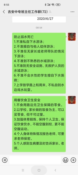 通过家长微信群每天推送两条防溺水等安全信息。