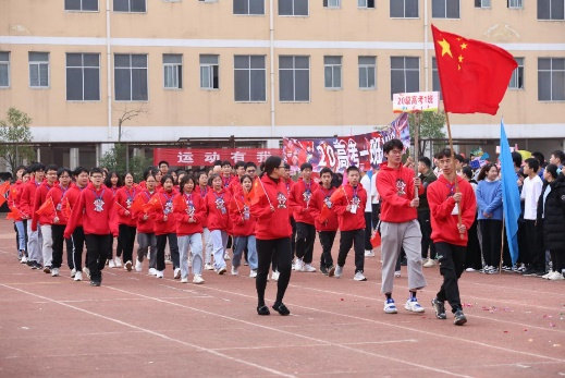 24日上午8时,在高亢的《运动员进行曲》中,在国旗仪仗队、校旗队、会徽队、彩旗队指引下,全校66个运动员方阵依次入场、接受检阅,拉开了校运会序幕。