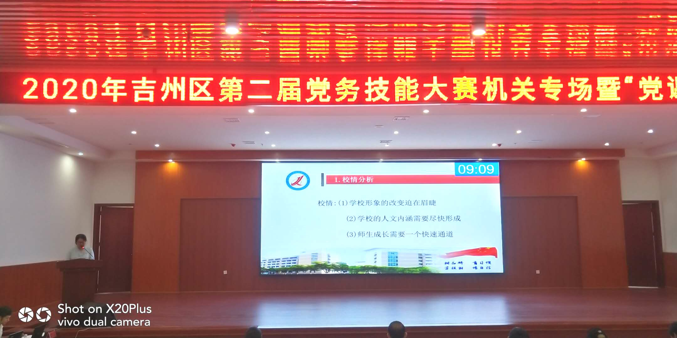 2020年7月21日上午,由中共吉安市吉州区委组织部举办的“全区第二届党务技能大赛机关专场暨党课开讲啦活动” 在区委党校三楼多功能厅进行,来自区直管部门单位党(工)委、区直机关工委直属党委(总支)和区级“六好”机关党支部共17个单位党组织选手代表同台竞技。