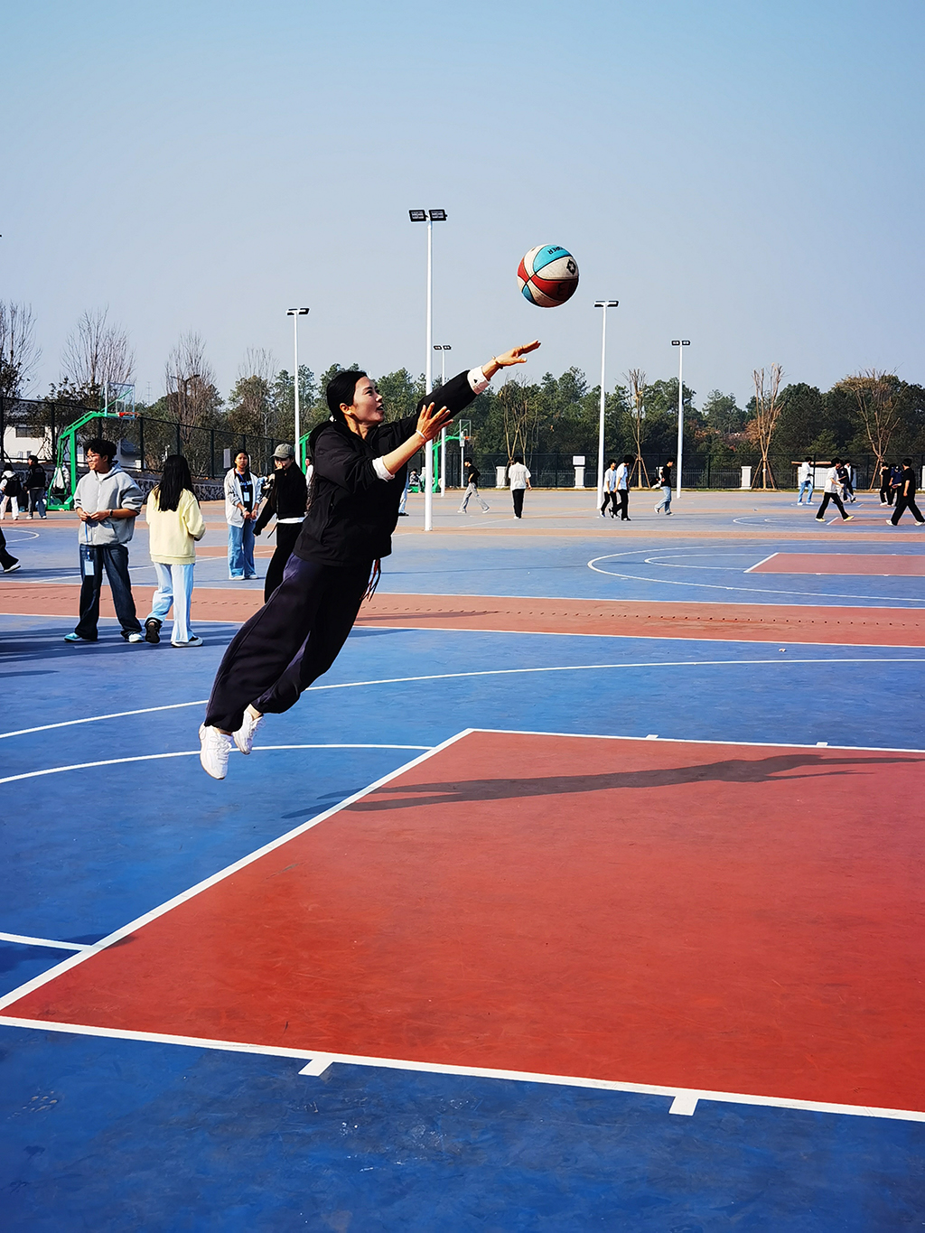 个人项目同样精彩纷呈。定点投篮区域,老师们屏气凝神、瞄准篮筐,一次次精准投射赢得满堂喝彩。一分钟跳绳场地内,跳绳翻飞,老师们脚下生风,在规定时间内全力冲刺,展现出极佳的身体协调性与耐力。